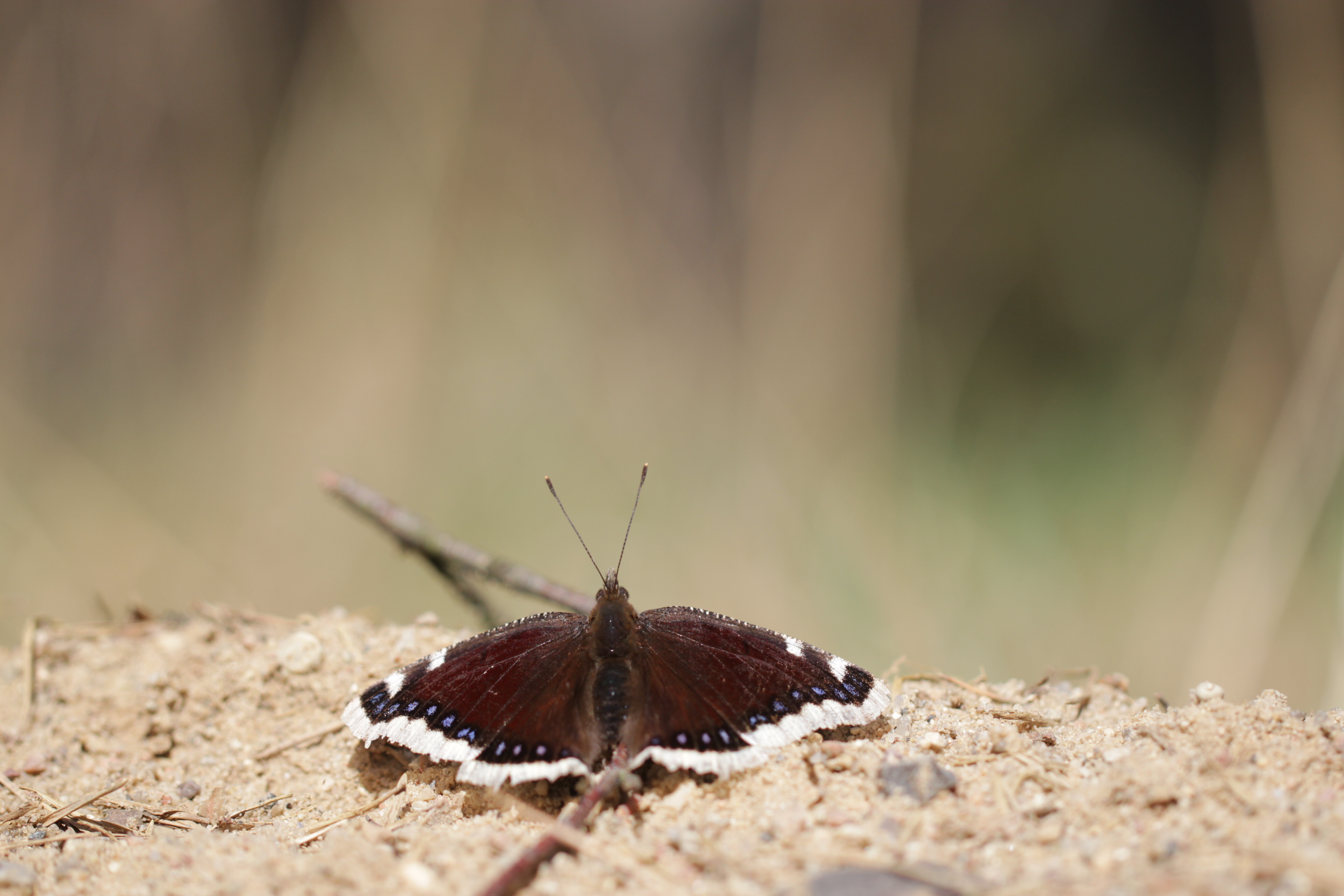 Podczas swoich mikrowypraw do Puszczy Noteckiej zauważyłem, że niektóre z dróg były wręcz usłane żałobnikami, które co kawałek wylatywały z lasu. Również kumulowały się w zagajnikach brzozowych. Zobaczyć tylu samotników w jednym miejscu to jak wygrana na loterii. To była najliczniejsza, jak do tej pory, z moich obserwacji. Na niewielkim kawałku drogi naliczyłem kilkanaście osobników. Przyznam się Wam szczerze, że nigdy nie spotkałem za to gąsienic, mimo, iż larwy żyją gromadnie i można je czasem znaleźć w dużych skupiskach na gałęziach drzew. Dopiero w ostatnich stadiach się rozpraszają i wędrują samotnie. Może w tym roku wybiorę się specjalnie na poszukiwania gąsieniczek?
