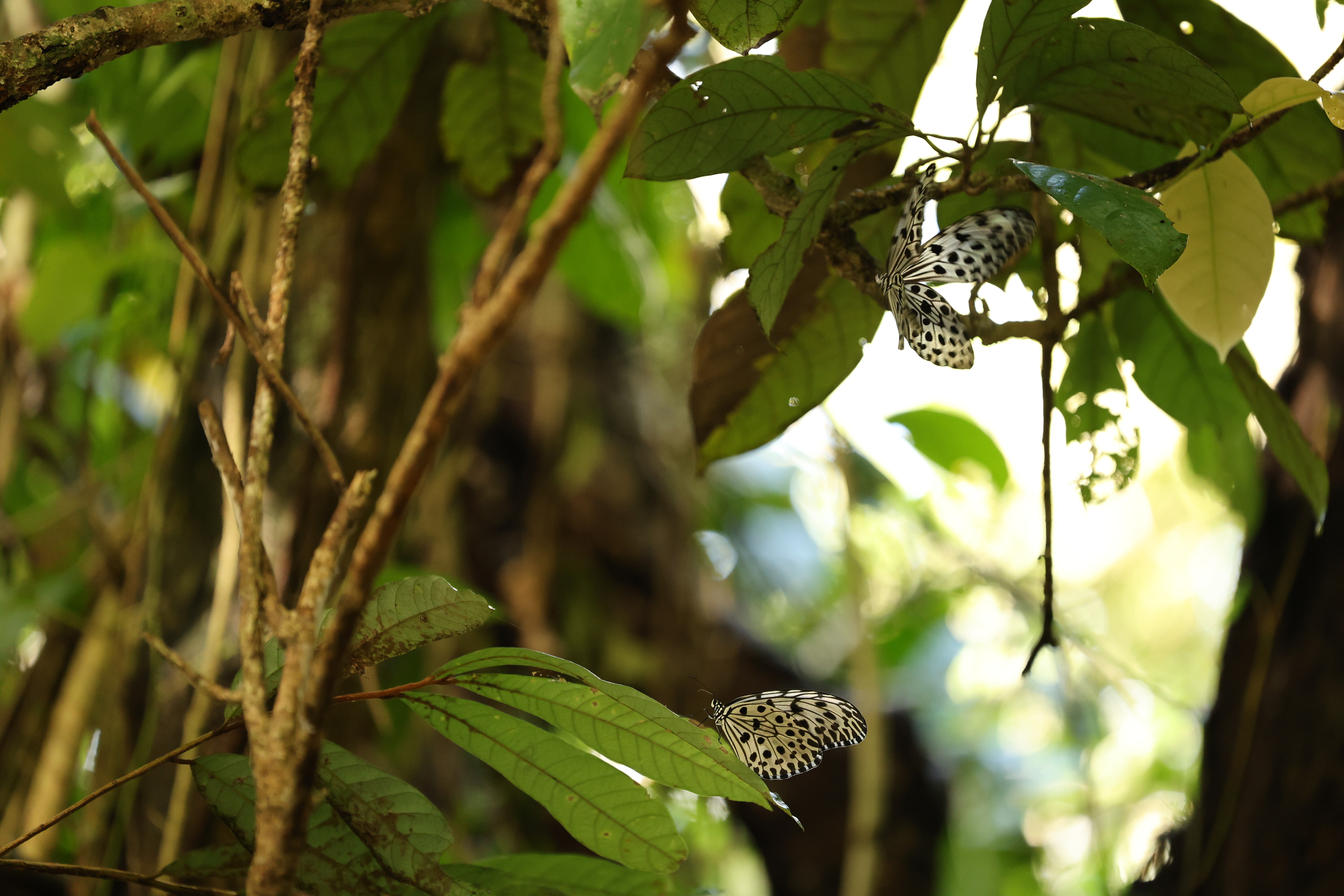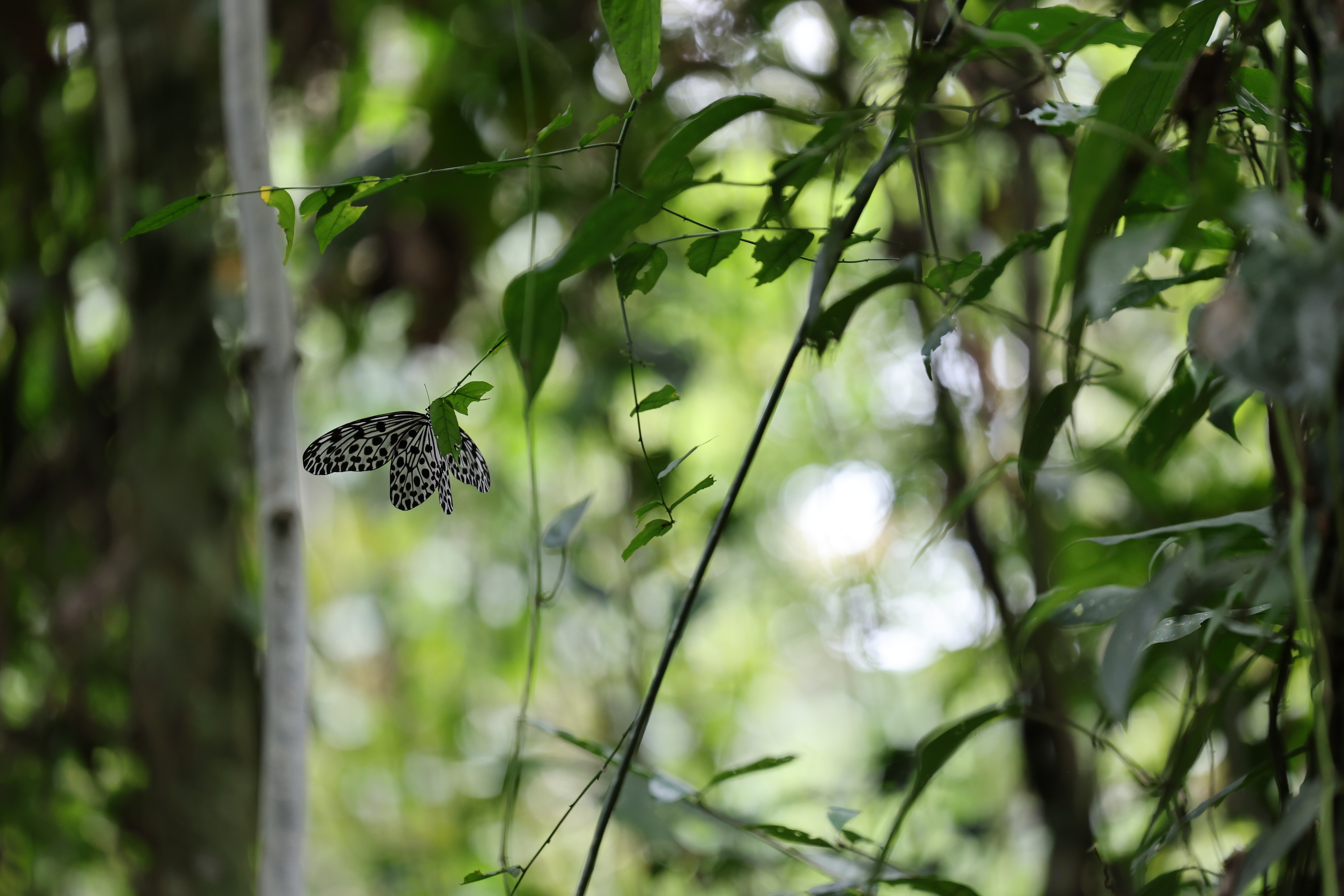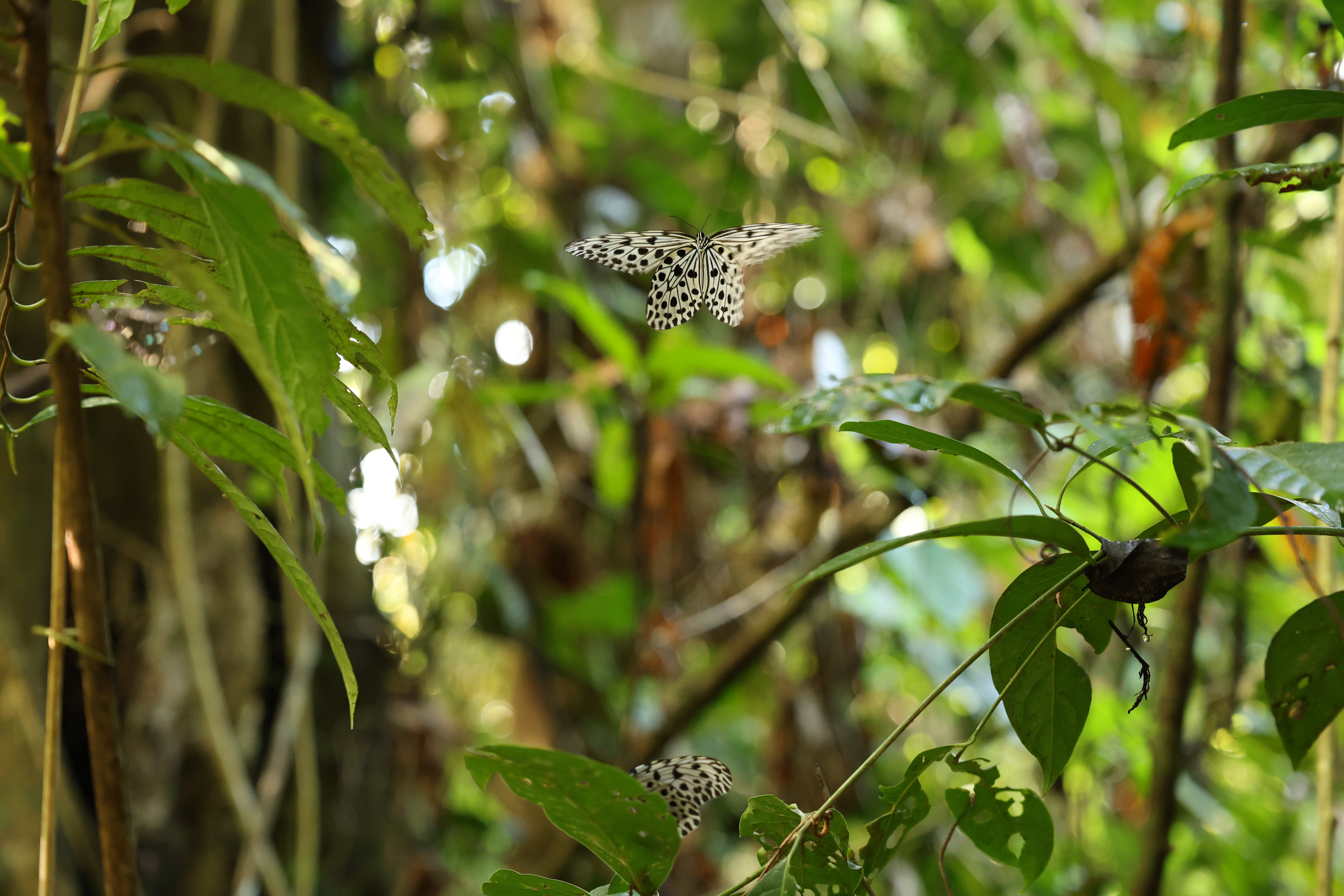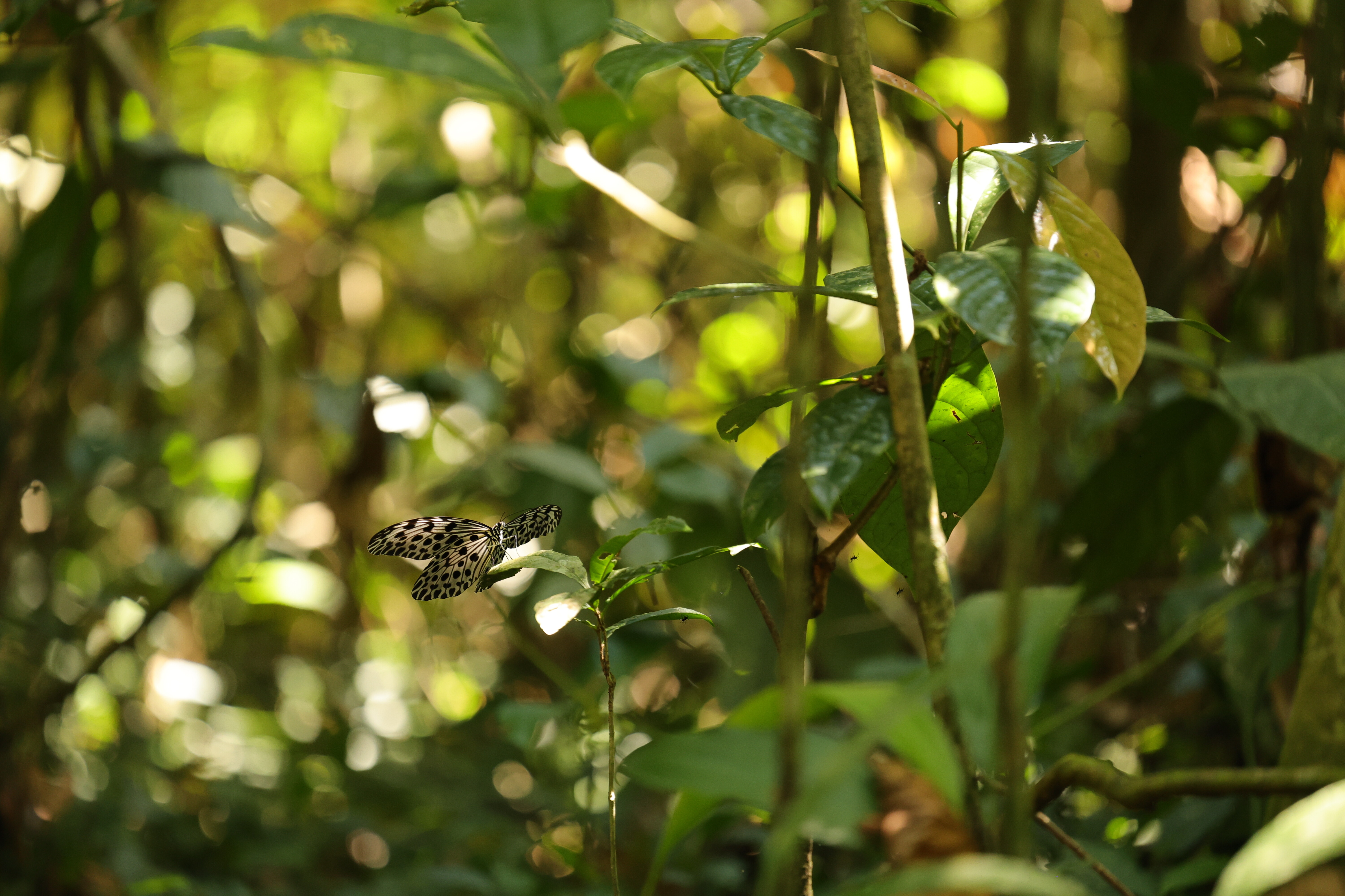 Przemierzając dżunglę, na samym dole tego gęstego ekosystemu, nie jesteśmy w stanie dojrzeć wierzchołków drzew, a co dopiero motyli, które tam występują. Z kolei w warstwie runa i podszytu panuje wieczny mrok. Co jakiś czas wyłaniają się z koron olbrzymich dipterokarpów strumienie światła, niczym struny harfy zawieszonej gdzieś na nieboskłonie. Przedzierają się przez niezliczone pnącza i epifity, docierając na dno lasu. To stwarza szansę na sfotografowanie motyli, które spragnione promieni słonecznych zatrzymują się w tych słonecznych hotspotach, niczym aktorzy na deskach teatralnych, na których skierowano światło.