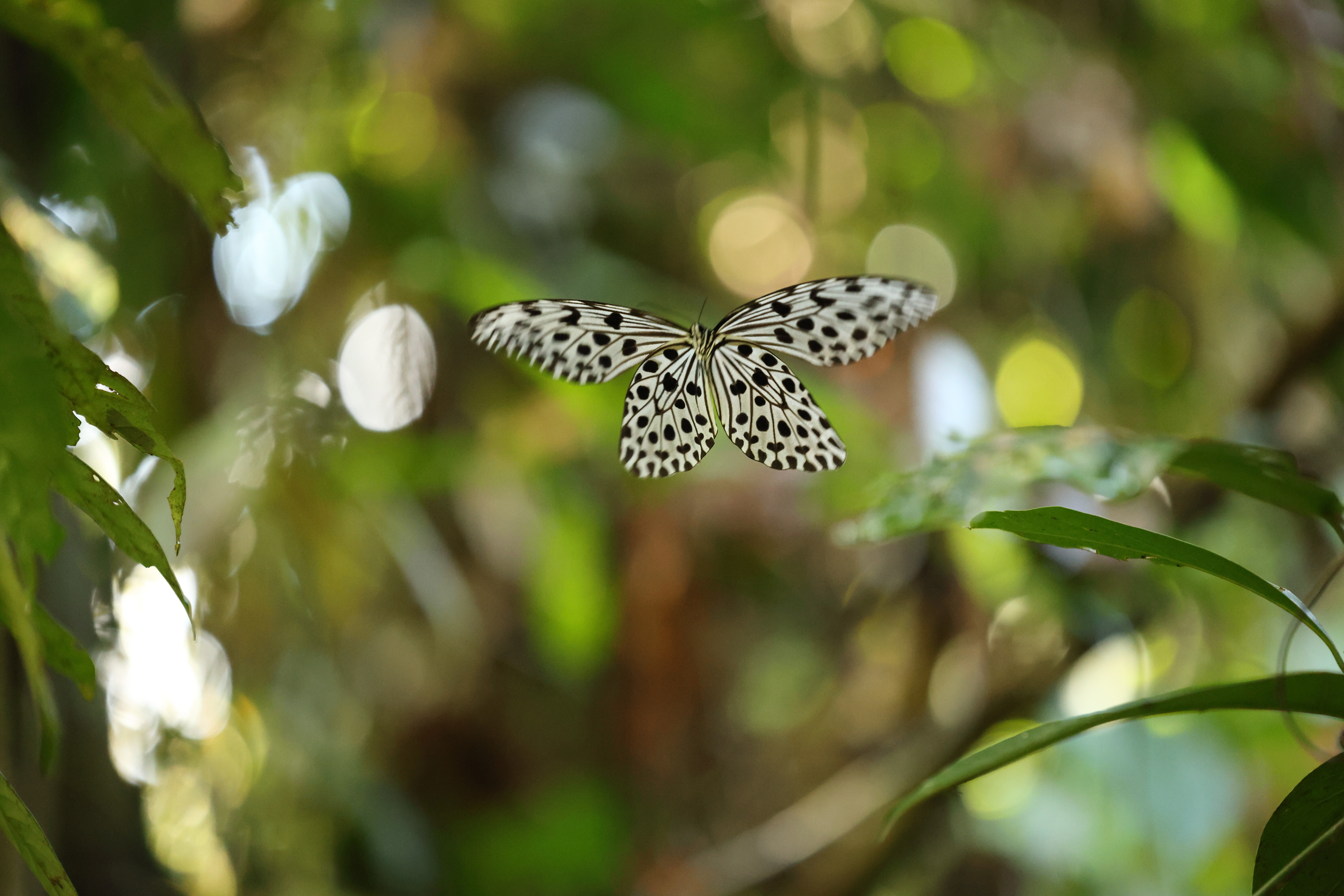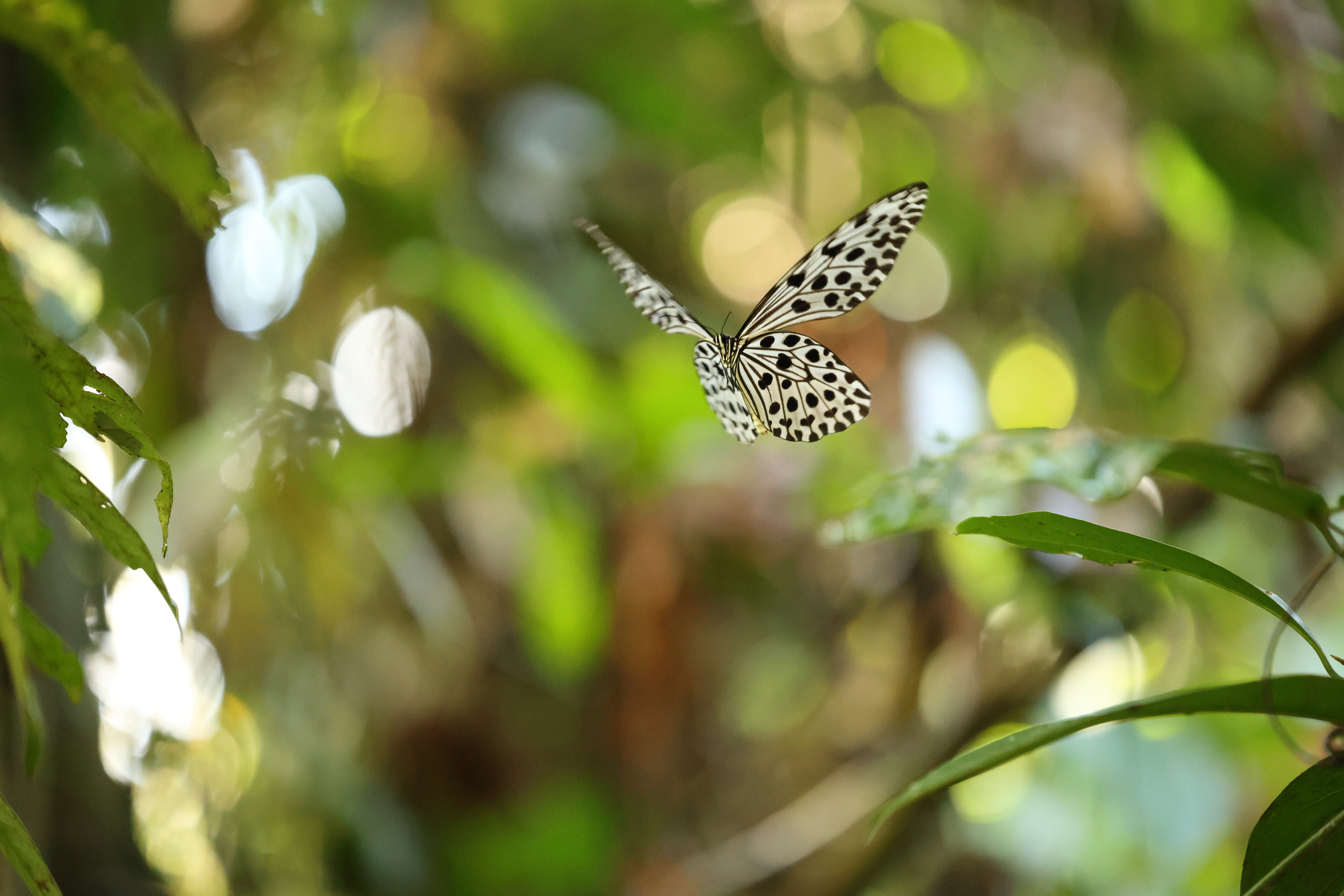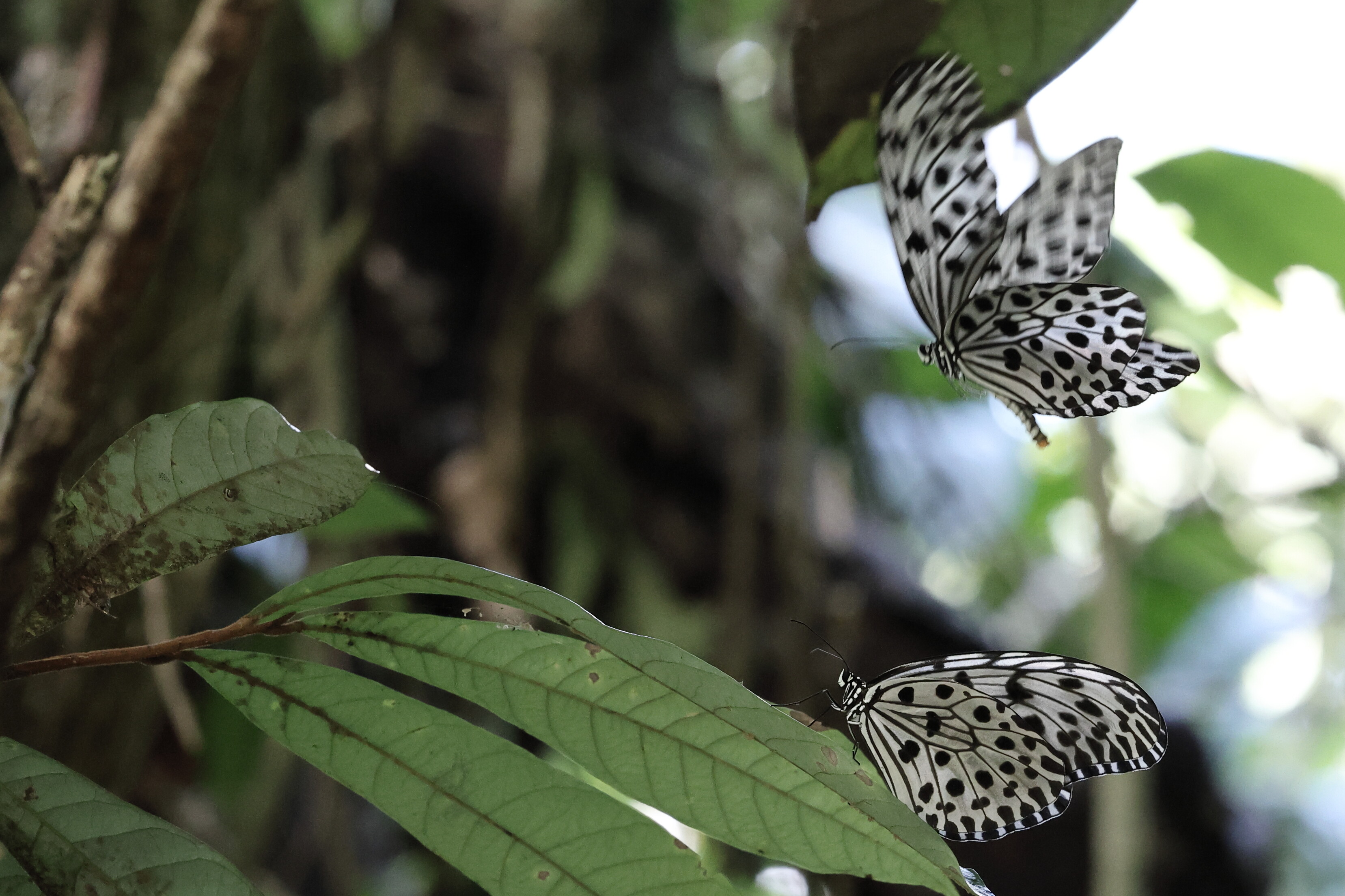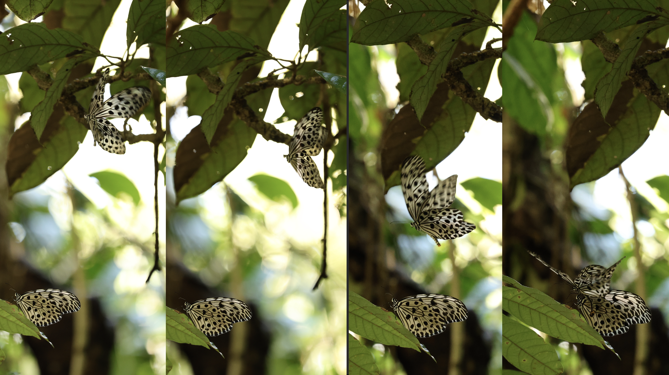 Przemierzając dżunglę, na samym dole tego gęstego ekosystemu, nie jesteśmy w stanie dojrzeć wierzchołków drzew, a co dopiero motyli, które tam występują. Z kolei w warstwie runa i podszytu panuje wieczny mrok. Co jakiś czas wyłaniają się z koron olbrzymich dipterokarpów strumienie światła, niczym struny harfy zawieszonej gdzieś na nieboskłonie. Przedzierają się przez niezliczone pnącza i epifity, docierając na dno lasu. To stwarza szansę na sfotografowanie motyli, które spragnione promieni słonecznych zatrzymują się w tych słonecznych hotspotach, niczym aktorzy na deskach teatralnych, na których skierowano światło.