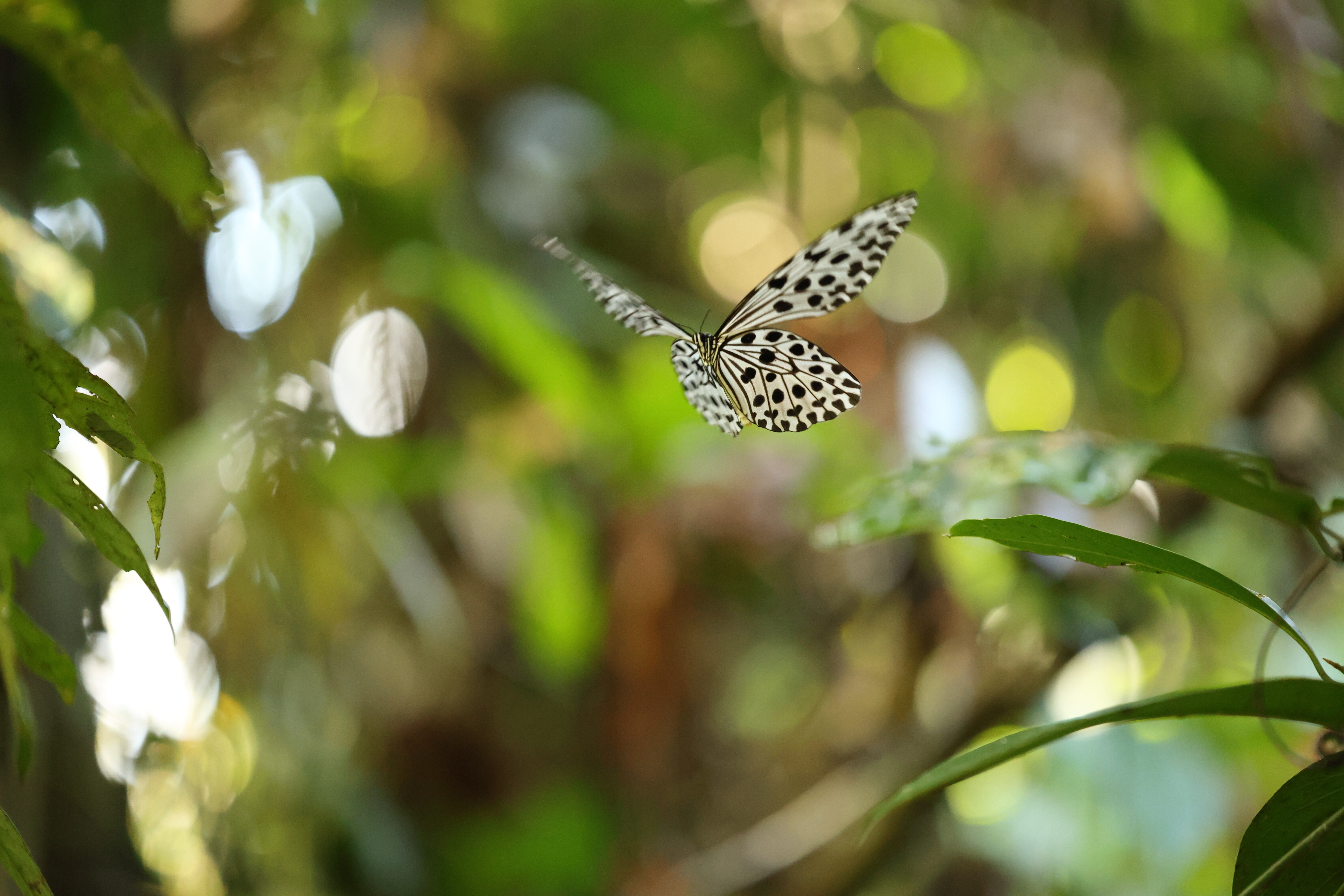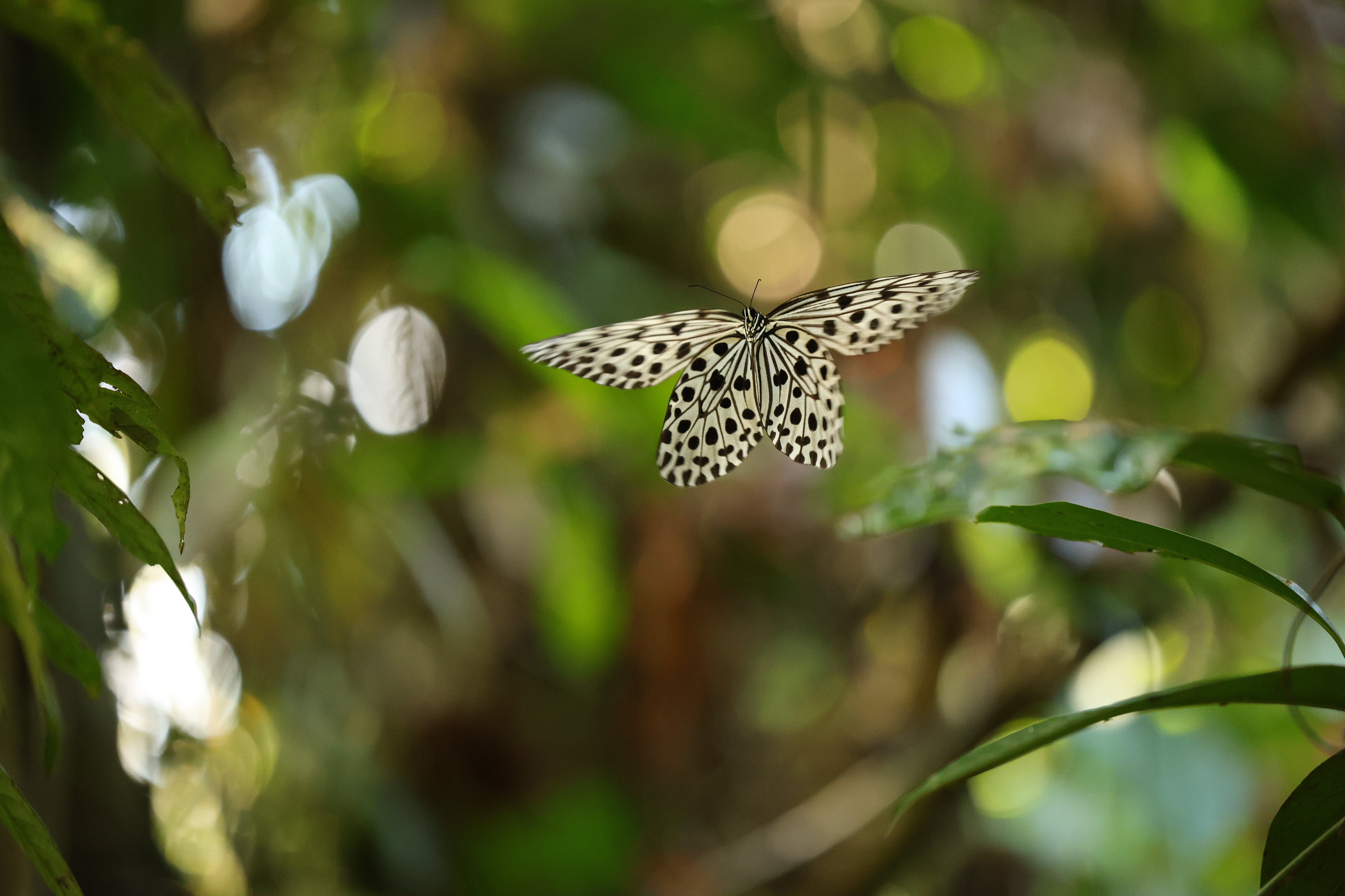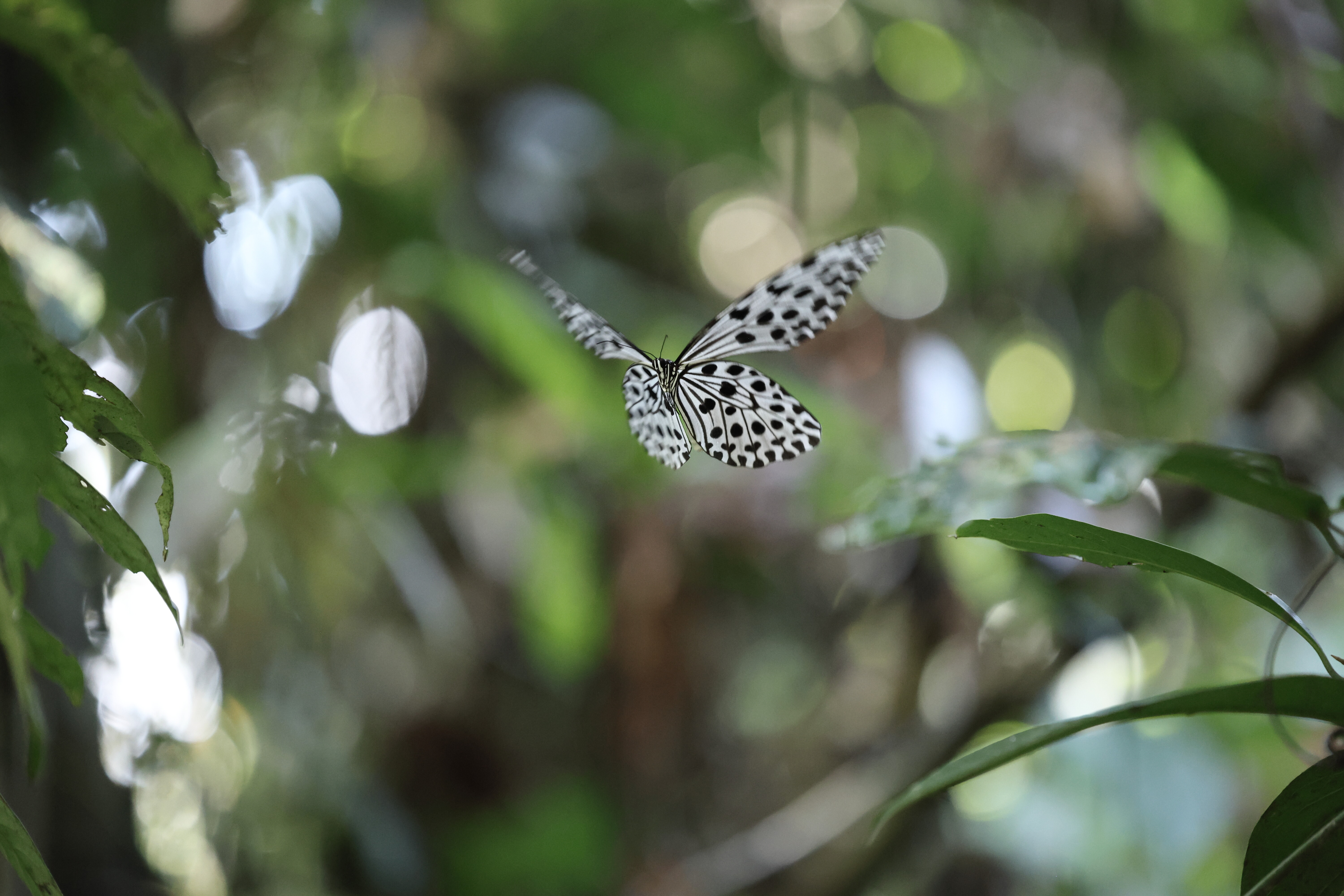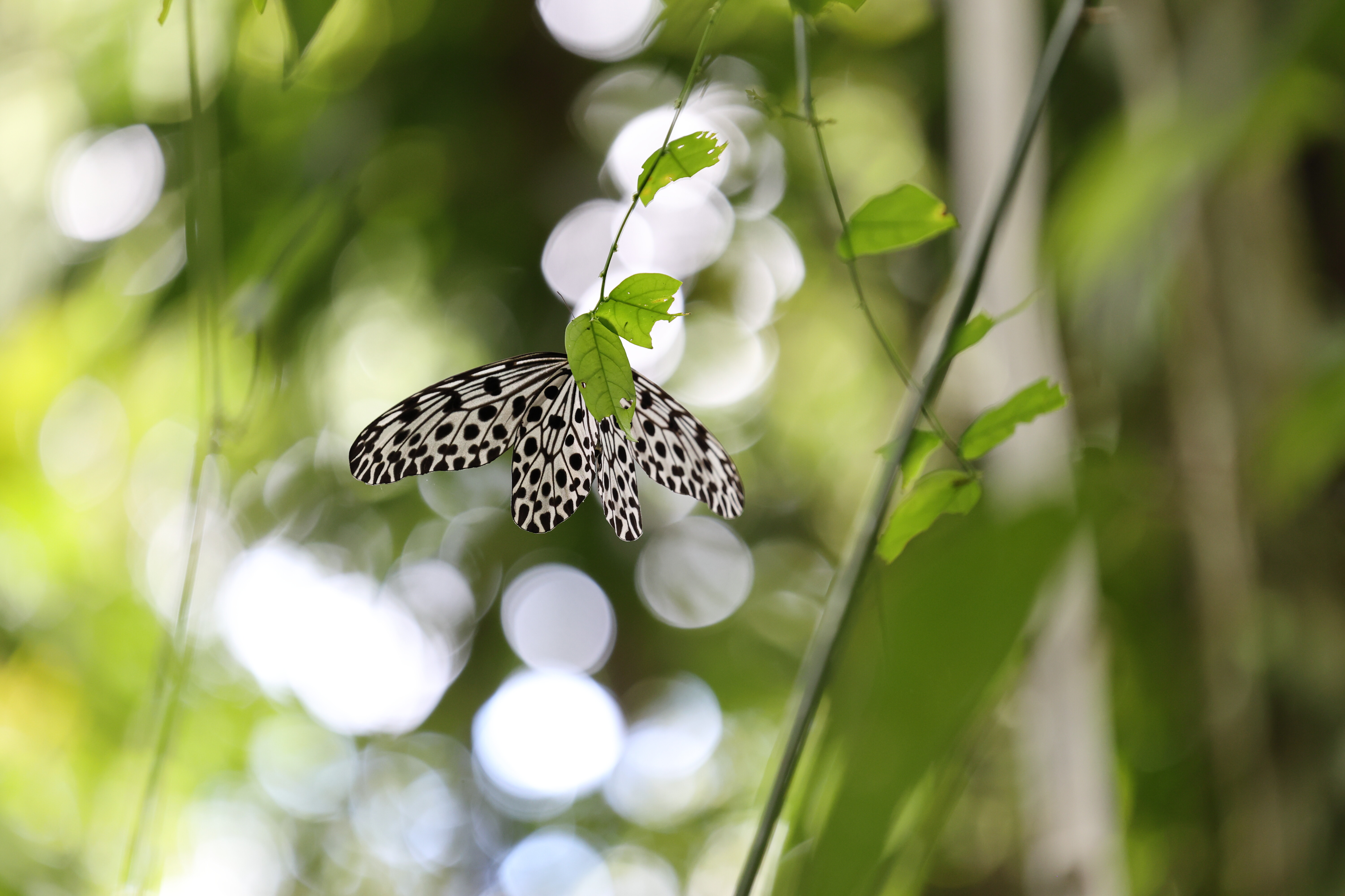 Przemierzając dżunglę, na samym dole tego gęstego ekosystemu, nie jesteśmy w stanie dojrzeć wierzchołków drzew, a co dopiero motyli, które tam występują. Z kolei w warstwie runa i podszytu panuje wieczny mrok. Co jakiś czas wyłaniają się z koron olbrzymich dipterokarpów strumienie światła, niczym struny harfy zawieszonej gdzieś na nieboskłonie. Przedzierają się przez niezliczone pnącza i epifity, docierając na dno lasu. To stwarza szansę na sfotografowanie motyli, które spragnione promieni słonecznych zatrzymują się w tych słonecznych hotspotach, niczym aktorzy na deskach teatralnych, na których skierowano światło.