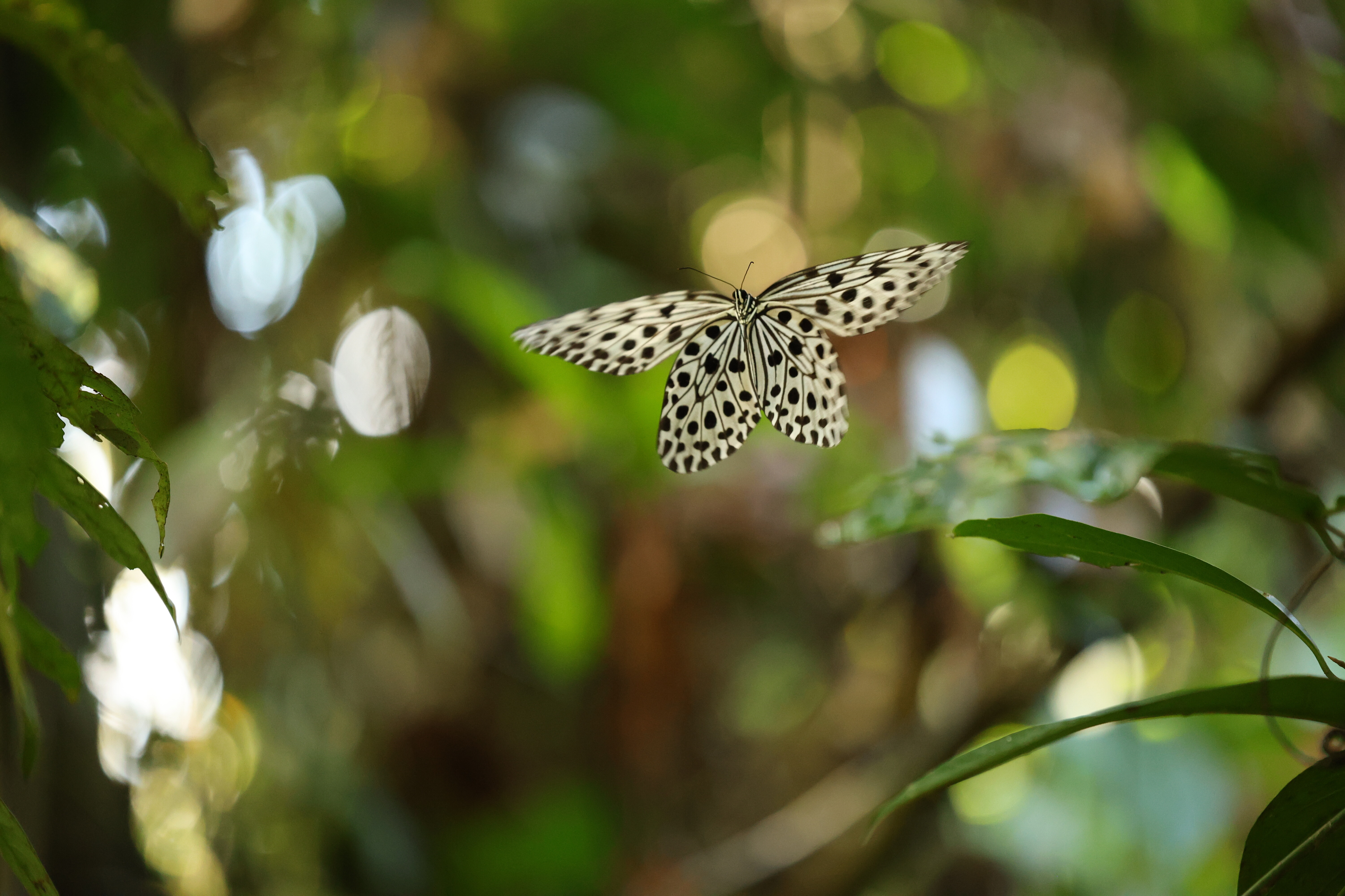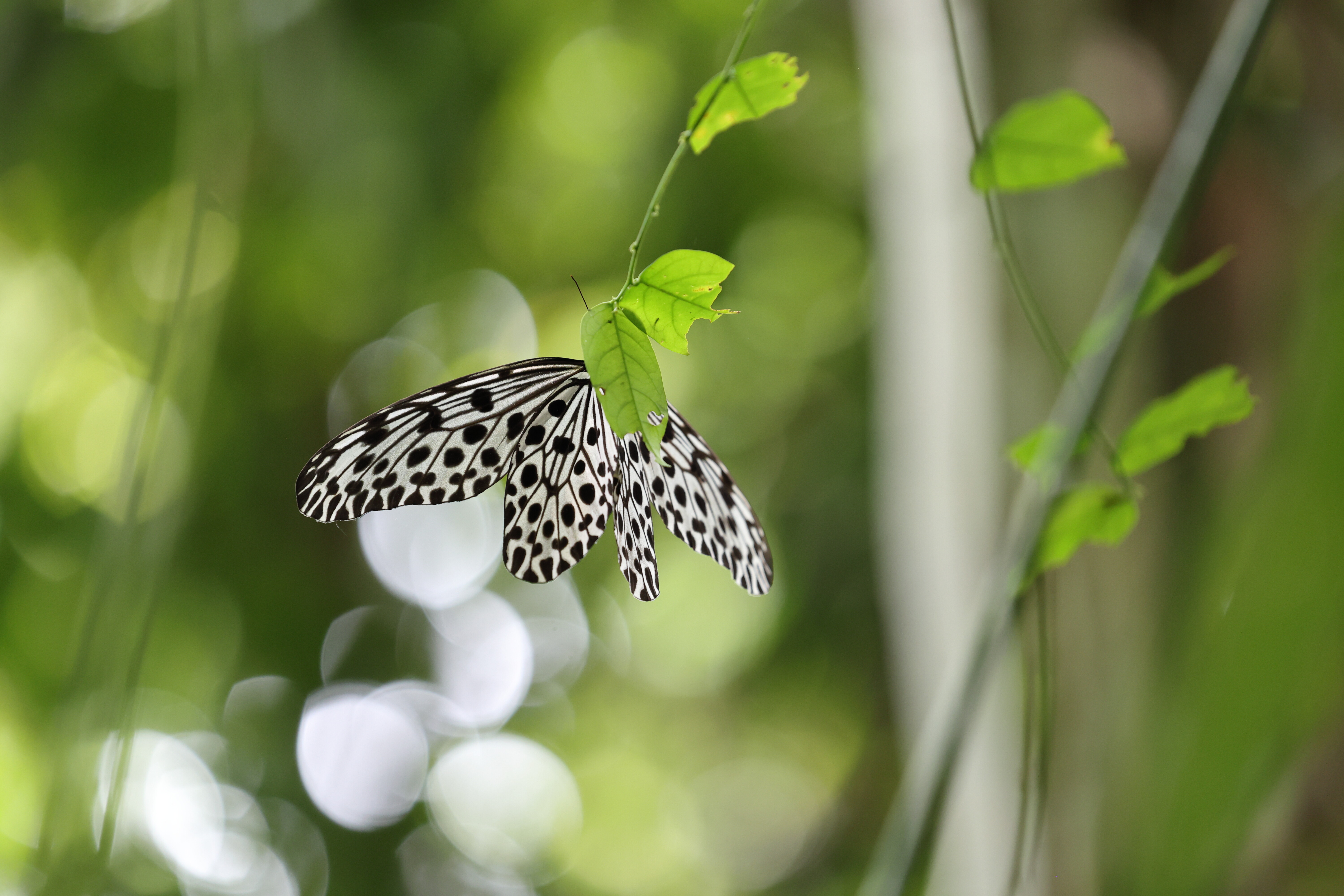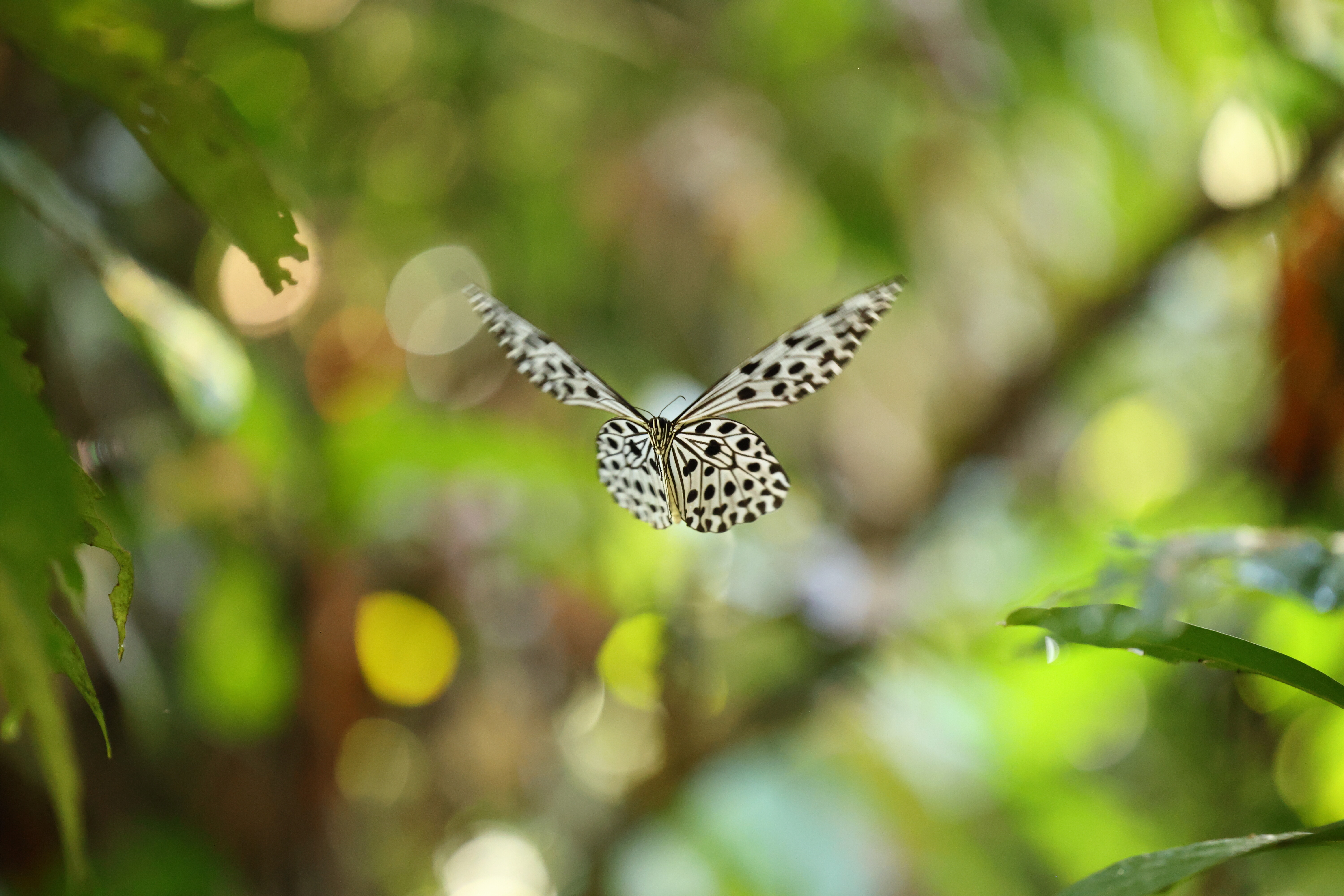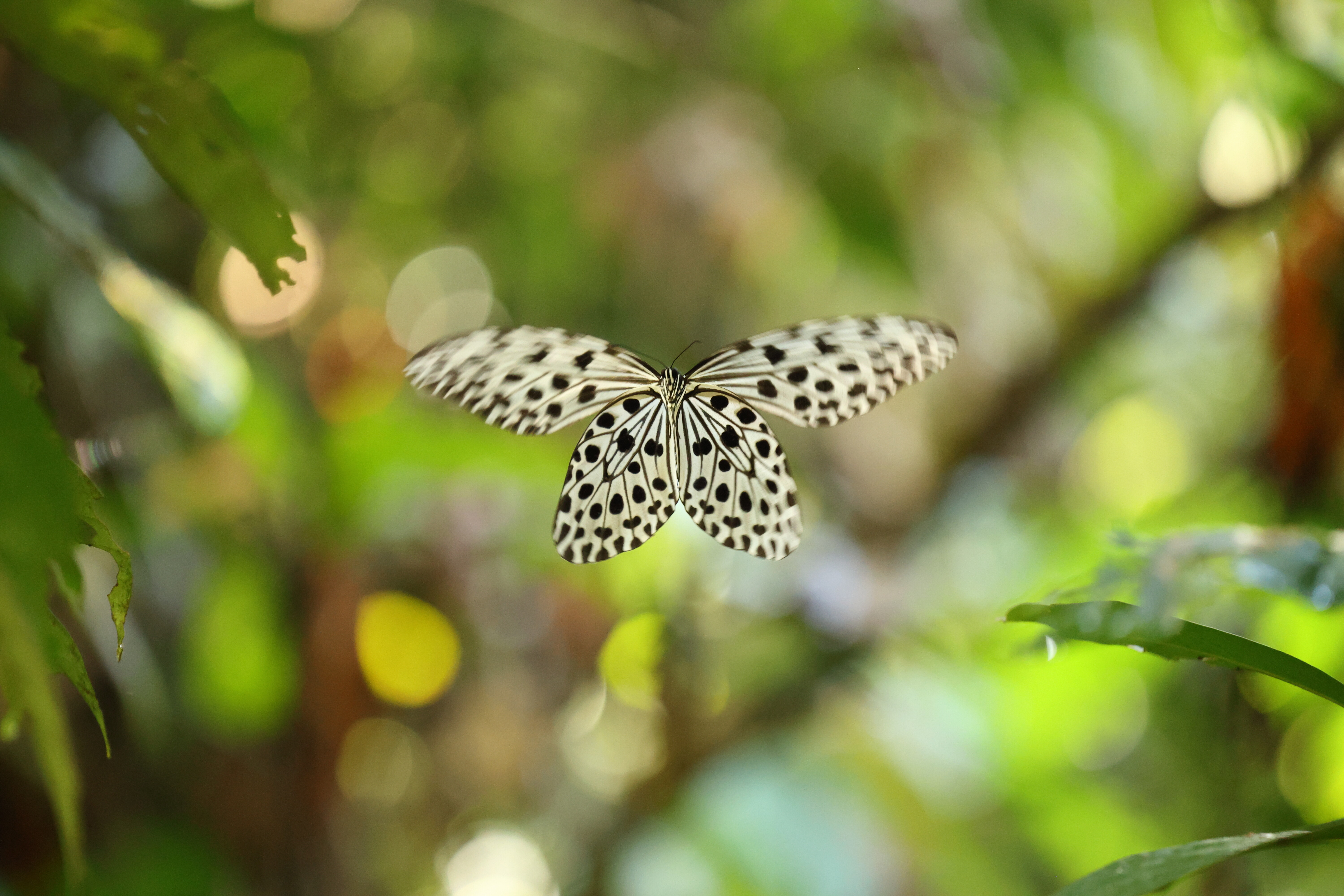 Przemierzając dżunglę, na samym dole tego gęstego ekosystemu, nie jesteśmy w stanie dojrzeć wierzchołków drzew, a co dopiero motyli, które tam występują. Z kolei w warstwie runa i podszytu panuje wieczny mrok. Co jakiś czas wyłaniają się z koron olbrzymich dipterokarpów strumienie światła, niczym struny harfy zawieszonej gdzieś na nieboskłonie. Przedzierają się przez niezliczone pnącza i epifity, docierając na dno lasu. To stwarza szansę na sfotografowanie motyli, które spragnione promieni słonecznych zatrzymują się w tych słonecznych hotspotach, niczym aktorzy na deskach teatralnych, na których skierowano światło.